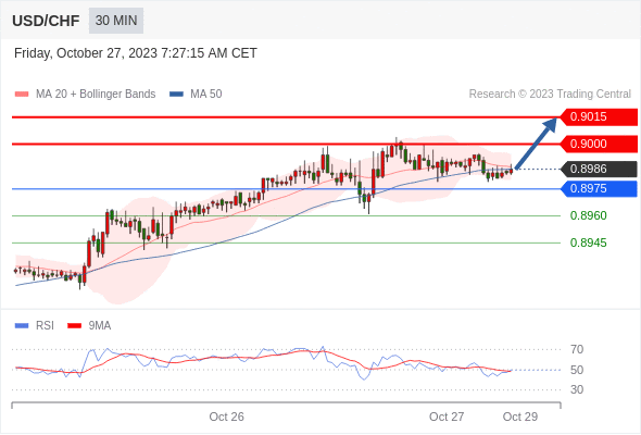 交易策略: 在 0.8975 之上,看涨,目标价位为 0.9000 ,然后为 0.9015 。