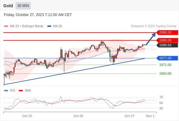 交易策略: 在 1977.00 之上,看涨,目标价位为 1993.00 ,然后为 2000.00 。