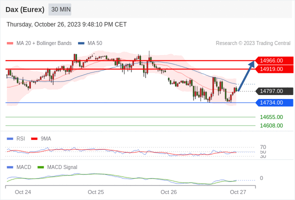 德国DAX指数期货 (Eurex)? 当日内: 有上涨的可能,目标价位定在 14966.00 。