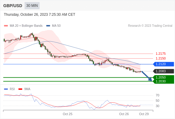 交易策略: 在 1.2100 之上,看涨,目标价位为 1.2155 ,然后为 1.2175 。