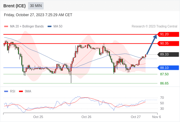 布伦特原油 (ICE)? (Z3)? 当日内: 目标位为91.20。