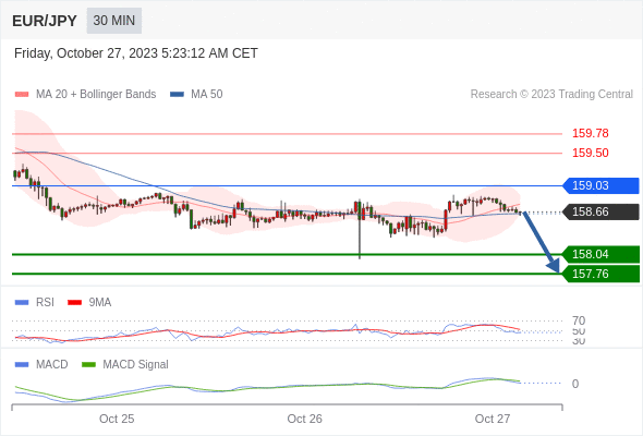 备选策略:如突破 159.03 ,EUR/JPY 目标方向为 159.50 和 159.78 。