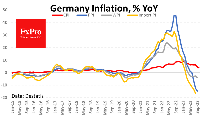 然而,价格压力来自几个方面,从经济萎缩到大宗商品价格下跌。德国经济环比萎缩0.1%,在过去四个季度中有三个季度出现萎缩,目前较上年同期下降0.8%。
