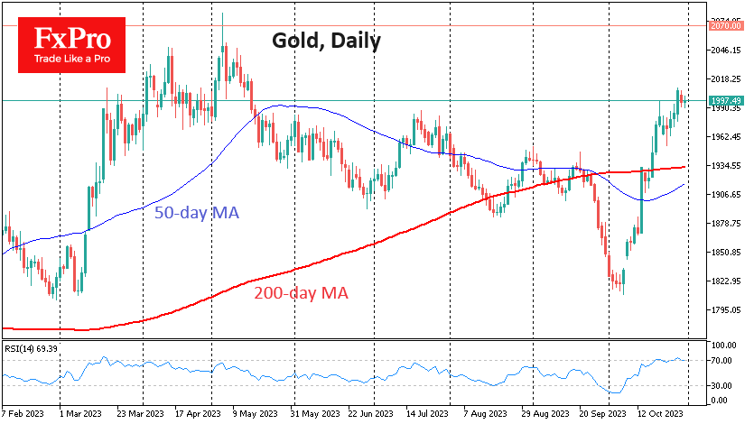 FxPro高级分析师Alex Kuptsikevich指出:从技术上讲,黄金在每日相对强弱指数上仍处于超卖区间(70)。与此同时,价格一直在上涨。上周初,金价曾短暂跌破这条线,但并未引发大幅回调,在本周结束时,我们看到买家迅速回归,将金价推至局部新高。