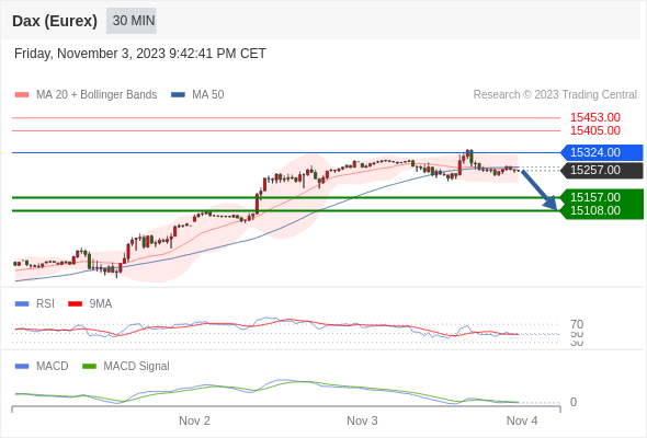 如突破 15324 ,德国DAX指数期货 (Eurex) 目标方向为 15405 和 15453 。