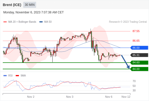 在 86.00 之下,看跌,目标价位为 84.60 ,然后为 84.00 。