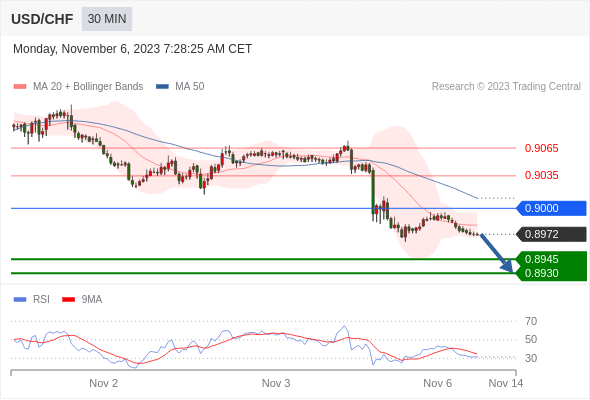 在 0.9000 之下,看跌,目标价位为 0.8945 ,然后为 0.8930 。