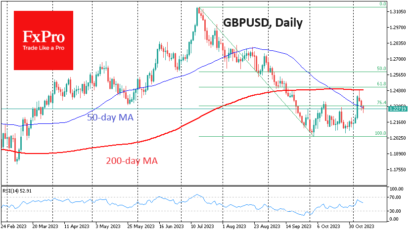 英镑兑美元周一攀升至1.2440,但在触及200日移动均线后引发了持续三天的抛售。将英镑保持在这条重要的技术线以下,令许多大的投资者对它失去兴趣,使其处于“卖出增长”的模式。