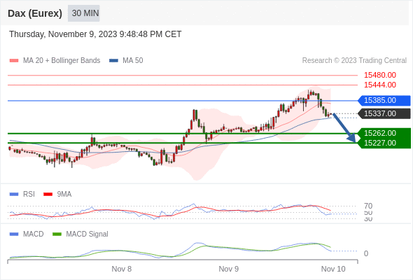 如突破 15385 ,德国DAX指数期货 (Eurex) 目标方向为 15444 和 15480 。