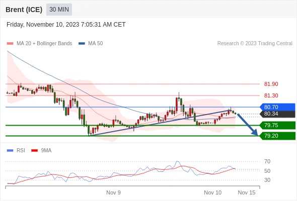 在 80.70 之下,看跌,目标价位为 79.75 ,然后为 79.20 。