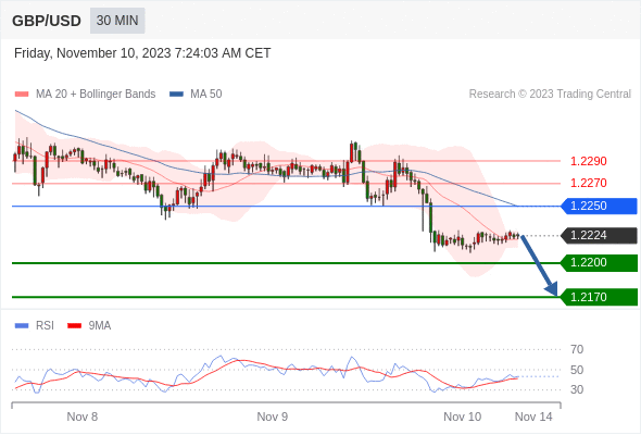 在 1.2250 之下,看跌,目标价位为 1.2200 ,然后为 1.2170 。