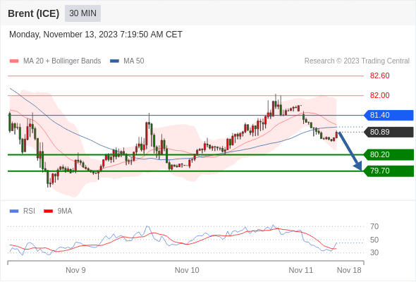 在 81.40 之下,看跌,目标价位为 80.20 ,然后为 79.70 。