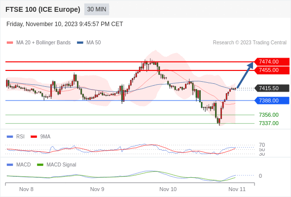 英国富时100指数期货 当日内: 看涨,当 7388.00 为支撑位。
