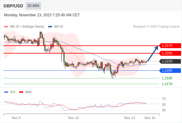 在 1.2205 之上,看涨,目标价位为 1.2250 ,然后为 1.2270 。
