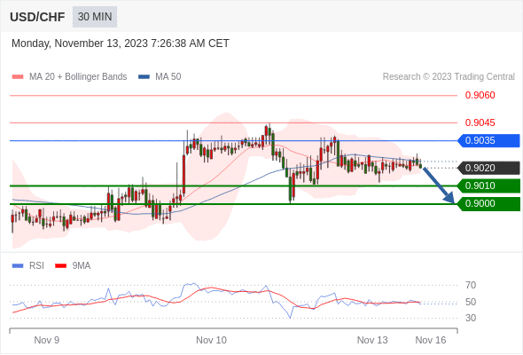 在 0.9035 之下,看跌,目标价位为 0.9010 ,然后为 0.9000 。
