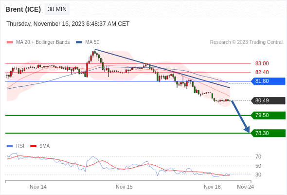 在 81.80 之下,看跌,目标价位为 79.50 ,然后为 78.30 。