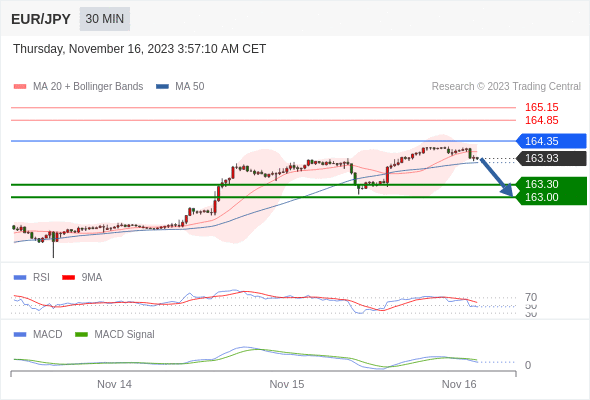 如突破 164.35 ,EUR/JPY 目标方向为 164.85 和 165.15 。