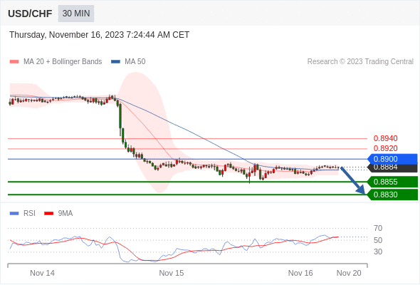 在 0.8900 之下,看跌,目标价位为 0.8855 ,然后为 0.8830 。