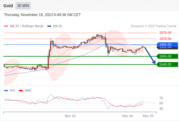 在 1965.00 之下,看跌,目标价位为 1955.00 ,然后为 1948.00 。