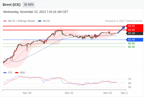 在 81.40 之上,看涨,目标价位为 82.90 ,然后为 83.50 。