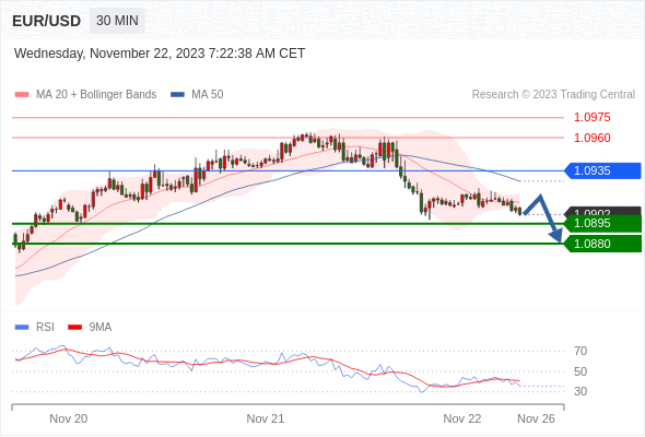 在 1.0935 之下,看跌,目标价位为 1.0895 ,然后为 1.0880 。