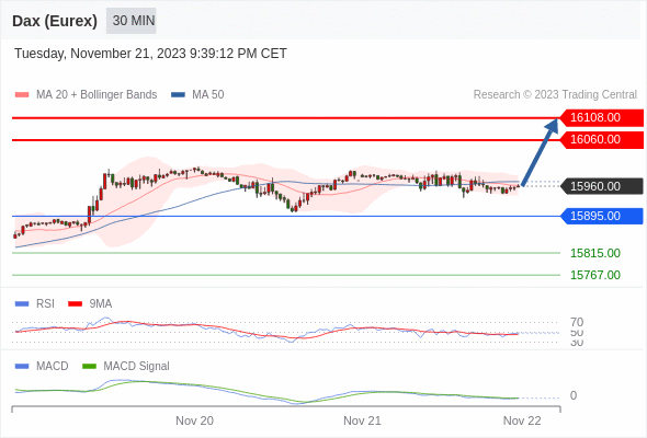 如跌破 15895 ,德国DAX指数期货 (Eurex) 目标方向定在 15815 和 15767 。