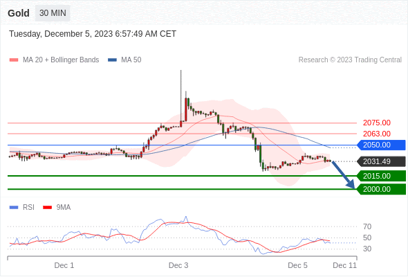 在 2050.00 之下,看跌,目标价位为 2015.00 ,然后为 2000.00 。
