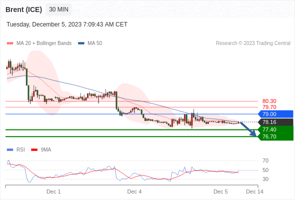在 79.00 之下,看跌,目标价位为 77.40 ,然后为 76.70 。