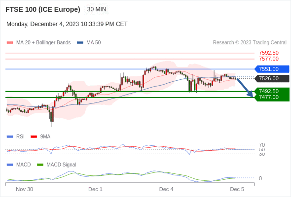 英国富时100指数期货 当日内: 在进一步下跌之前,反弹至 7551.00 附近。