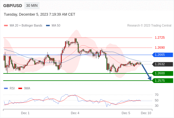 在 1.2665 之下,看跌,目标价位为 1.2600 ,然后为 1.2575 。