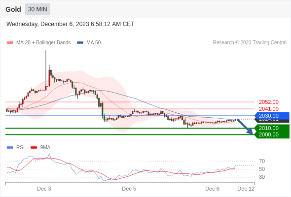 在 2030.00 之下,看跌,目标价位为 2010.00 ,然后为 2000.00 。