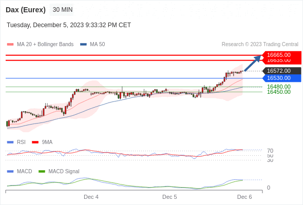如跌破 16530 ,德国DAX指数期货 (Eurex) 目标方向定在 16480 和 16450 。