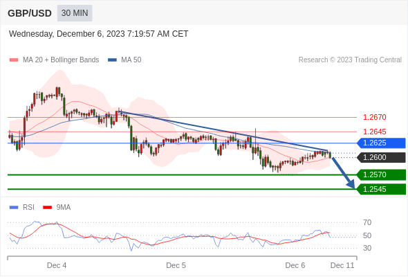在 1.2625 之下,看跌,目标价位为 1.2570 ,然后为 1.2545 。