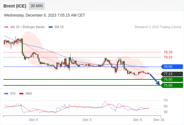 在 78.00 之下,看跌,目标价位为 76.50 ,然后为 75.80 。