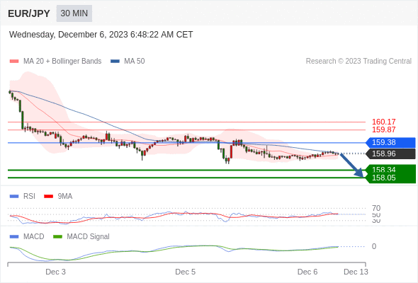 如突破 159.38 ,EUR/JPY 目标方向为 159.87 和 160.17 。