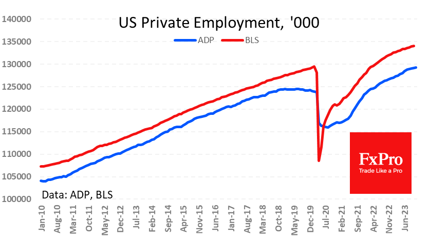 该指标被视为官方数据发布前对就业市场的最后洞察。根据ADP的数据,在过去的三个月里,私营部门平均每月创造10万个新工作岗位。我们在2018年底看到了类似的放缓,随后经历了一年的停滞,并在疫情爆发前逆转下降。