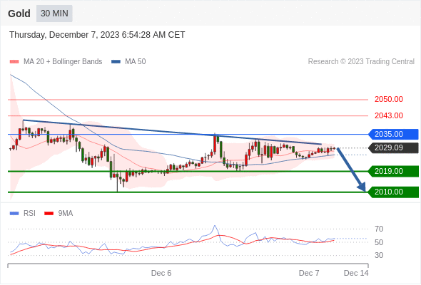 在 2035.00 之下,看跌,目标价位为 2019.00 ,然后为 2010.00 。