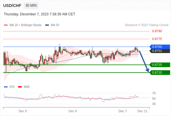 在 0.8760 之下,看跌,目标价位为 0.8725 ,然后为 0.8710 。