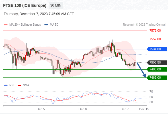 在 7534.00 之下,看跌,目标价位为 7488.00 ,然后为 7469.00 。