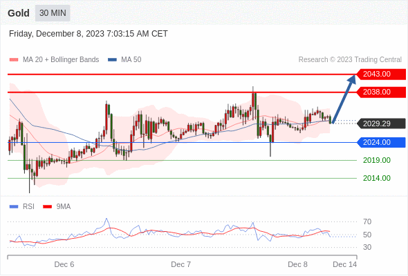 在 2024.00 之上,看涨,目标价位为 2038.00 ,然后为 2043.00 。