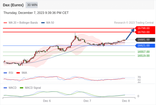 如跌破 16621 ,德国DAX指数期货 (Eurex) 目标方向定在 16557 和 16519 。