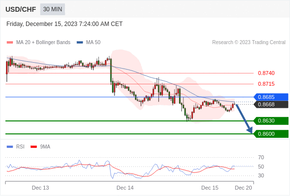 在 0.8685 之下,看跌,目标价位为 0.8630 ,然后为 0.8600 。