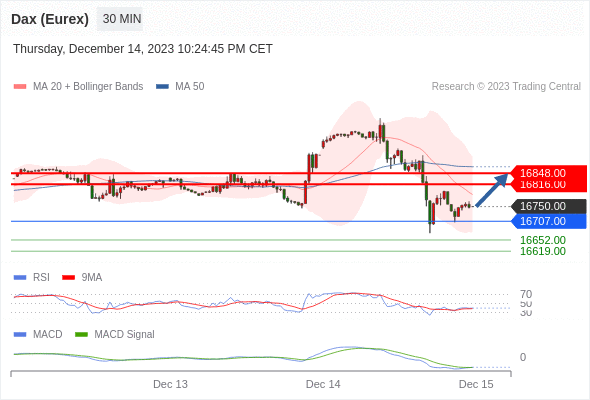 如跌破 16707 ,德国DAX指数期货 (Eurex) 目标方向定在 16652 和 16619 。