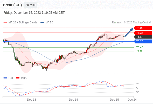 在 76.20 之上,看涨,目标价位为 77.35 ,然后为 78.00 。