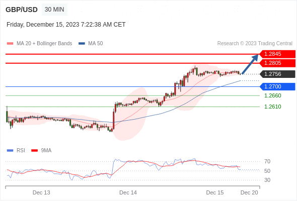 在 1.2700 之上,看涨,目标价位为 1.2805 ,然后为 1.2845 。