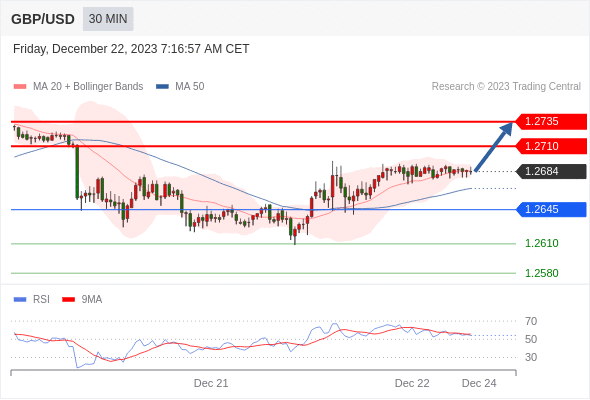 在 1.2645 之上,看涨,目标价位为 1.2710 ,然后为 1.2735 。
