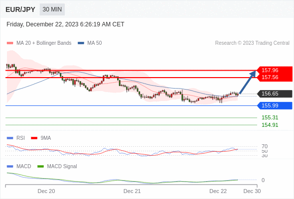 欧元/日元 当日内: 看涨,当 155.99 为支撑位。