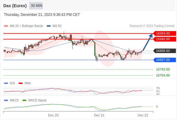 德国DAX指数期货 (Eurex)? 当日内: 看涨,当 16807.00 为支撑位。