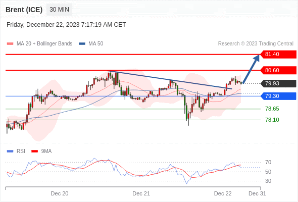在 79.30 之上,看涨,目标价位为 80.60 ,然后为 81.40 。