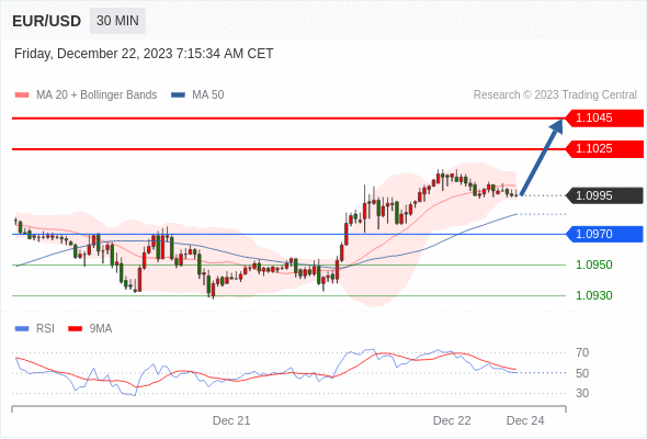 在 1.0970 之上,看涨,目标价位为 1.1025 ,然后为 1.1045 。